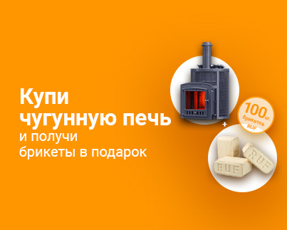 Купите любую чугунную печь и получите 100 кг высококачественных брикетов RUF в подарок!